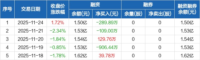 弘景光电:融资净偿还289.89万元,融资余额1.5亿元(11-24)