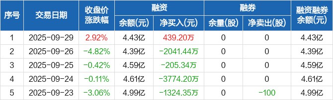 致尚科技:融资净买入439.2万元,融资余额4.43亿元(09-29)
