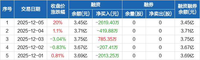 致尚科技:融资净偿还2619.4万元,融资余额3.45亿元(12-05)