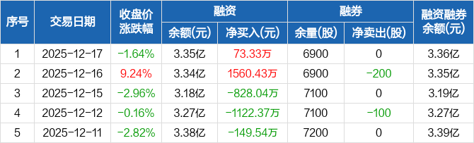 豪恩汽电:融资净买入73.33万元,融资余额3.35亿元(12-17)