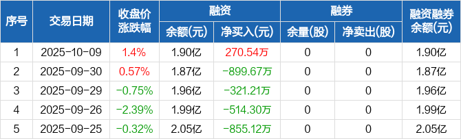 汉桑科技:融资净买入270.54万元,融资余额1.9亿元(10-09)