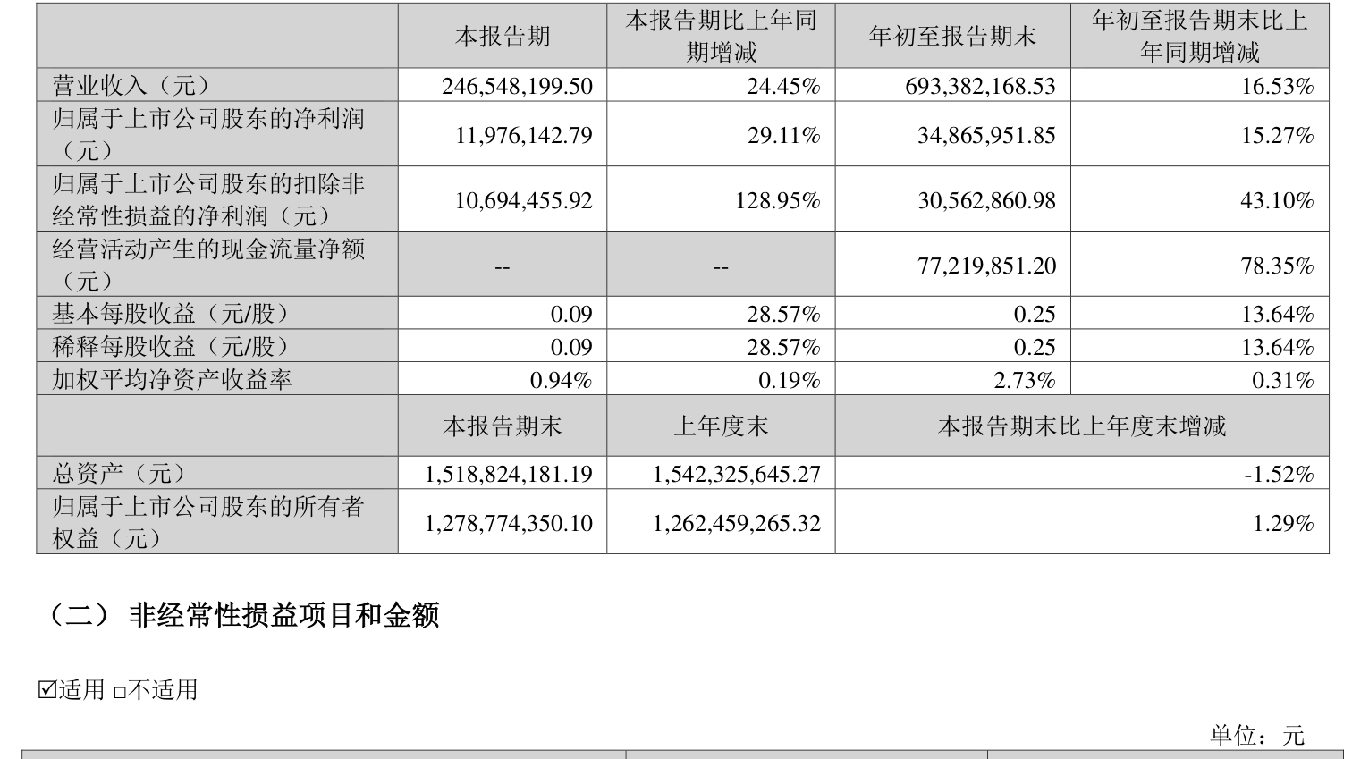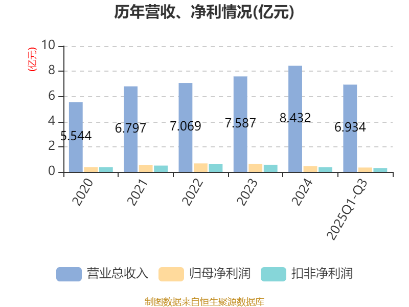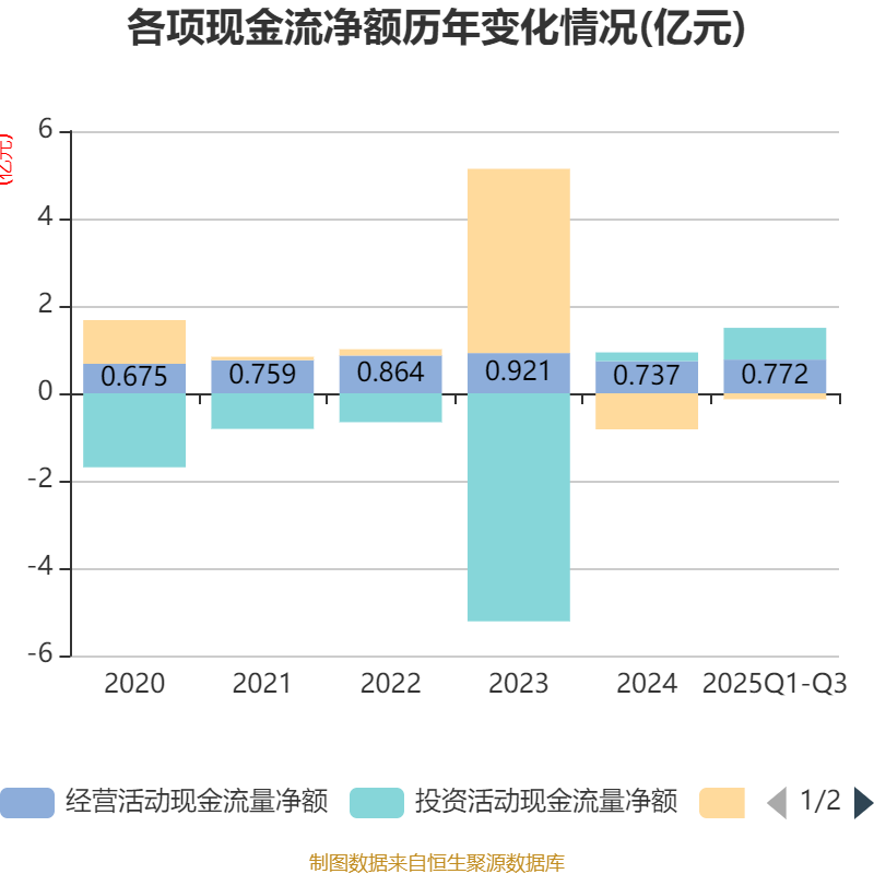 2025年前三季度,公司经营活动现金流净额为7721.99万元,同比增长78.35%;筹资活动现金流净额-1363.41万元,同比增加8396.32万元;投资活动现金流净额7261.12万元,上年同期为5483.05万元。