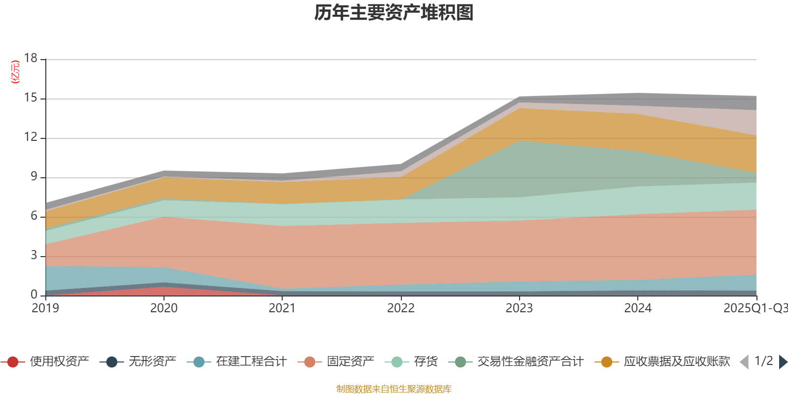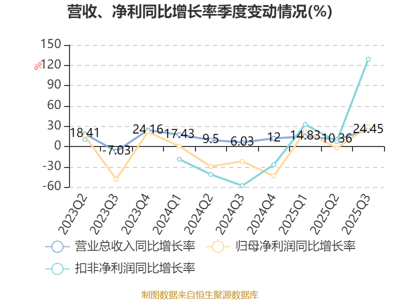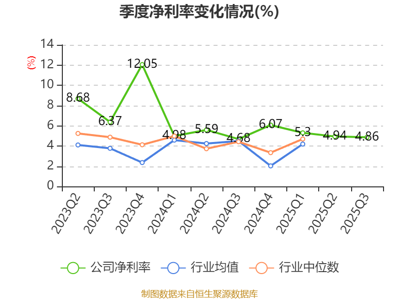 资产重大变化方面,截至2025年三季度末,公司交易性金融资产合计较上年末减少72.77%,占公司总资产比重下降12.65个百分点;货币资金较上年末增加206.62%,占公司总资产比重上升8.56个百分点;在建工程合计较上年末增加51.11%,占公司总资产比重上升2.79个百分点;其他非流动资产较上年末增加147.89%,占公司总资产比重上升0.56个百分点。