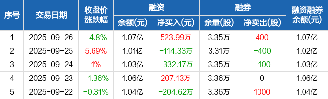 飞南资源:融资净买入523.99万元,融资余额1.07亿元(09-26)