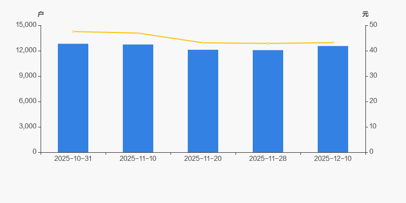 截至2025年12月10日,公司最新总股本为1.48亿股,其中流通股本为3697.5万股。户均持有流通股数量由上期的3062股下降至2944股,户均流通市值12.71万元。