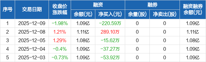 华阳智能:融资净偿还220.59万元,融资余额1.09亿元(12-09)