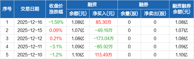 华阳智能:融资净买入85.3万元,融资余额1.08亿元(12-16)