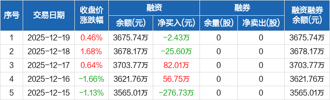 智迪科技:融资净偿还2.43万元,融资余额3675.74万元(12-19)