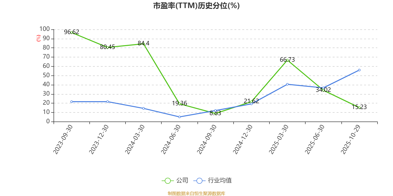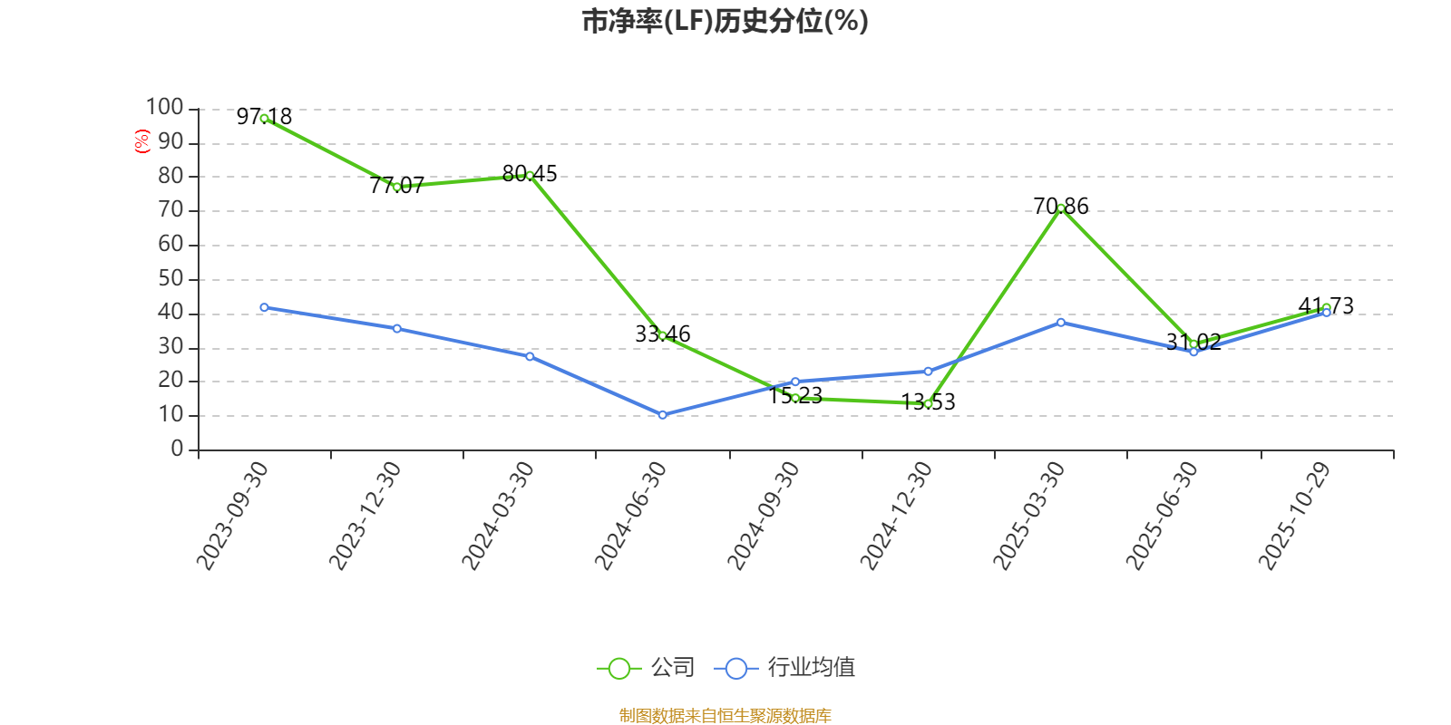 市盈率、市净率为负时,不显示当期分位数,会导致折线图中断。