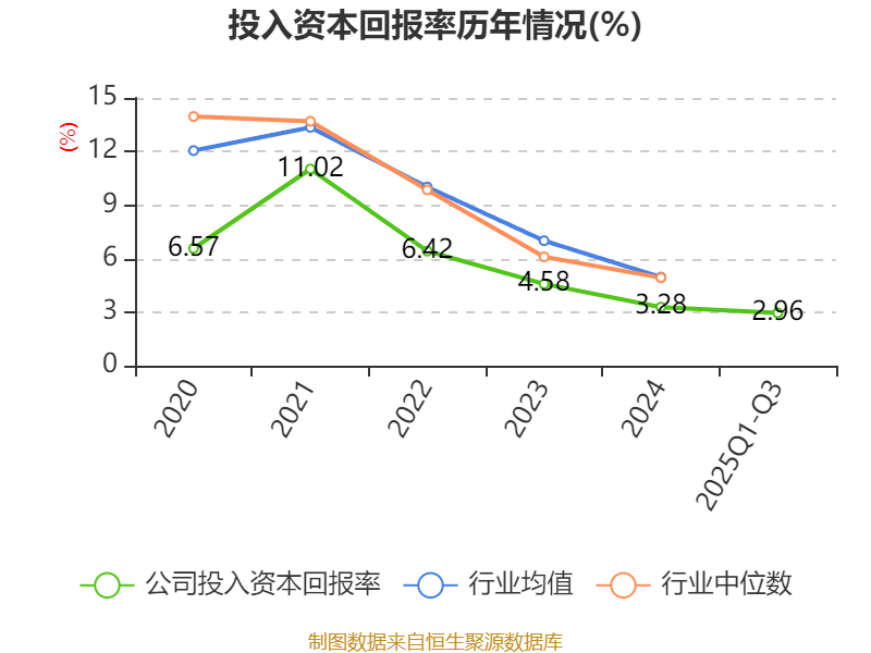盈利能力方面, 2025年前三季度公司加权平均净资产收益率为3.18%,同比上升0.93个百分点。公司2025年前三季度投入资本回报率为2.96%,较上年同期上升1.19个百分点。