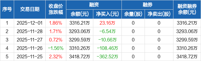 智信精密:融资净买入23.16万元,融资余额3316.21万元(12-01)