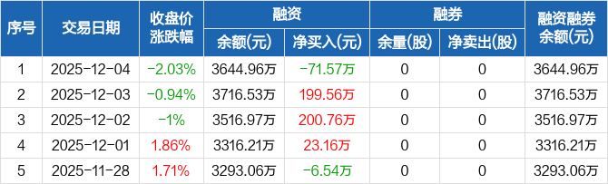 智信精密:融资净偿还71.57万元,融资余额3644.96万元(12-04)
