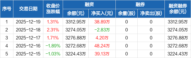 智信精密:融资净买入38.89万元,融资余额3312.95万元(12-19)