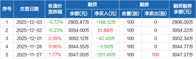港通医疗:融资净偿还148.12万元,融资余额2905.87万元(12-03)