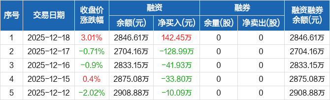 港通医疗:融资净买入142.45万元,融资余额2846.61万元(12-18)