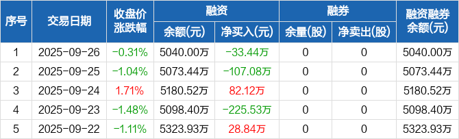 万邦医药:融资净偿还33.44万元,融资余额5040万元(09-26)