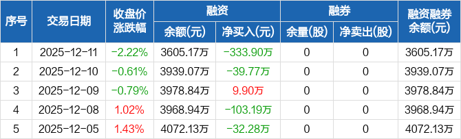 万邦医药:融资余额3605.17万元,创近一年新低(12-11)