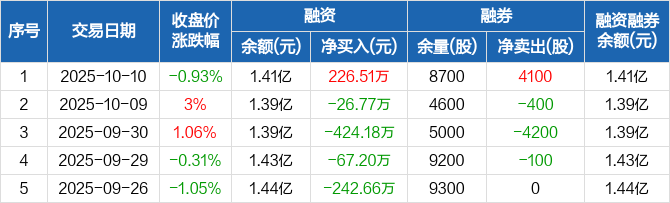 上大股份:融资净买入226.51万元,融资余额1.41亿元(10-10)