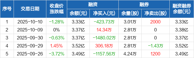 国际复材:融资净偿还423.73万元,融资余额3.33亿元(10-10)