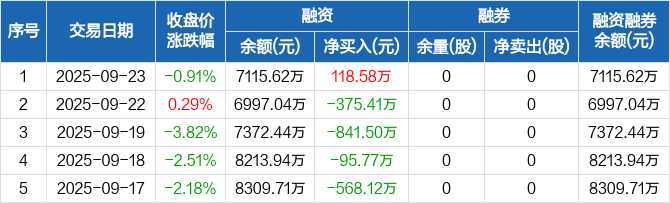多浦乐:融资净买入118.58万元,融资余额7115.62万元(09-23)