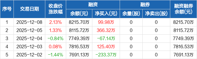 多浦乐:融资净买入99.98万元,融资余额8215.7万元(12-08)