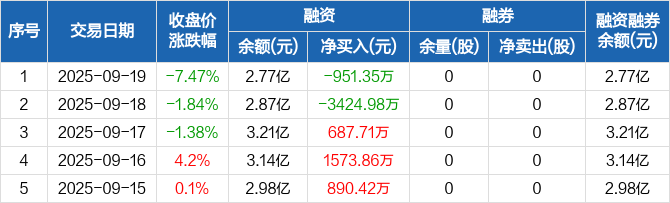 福赛科技:融资净偿还951.35万元,融资余额2.77亿元(09-19)