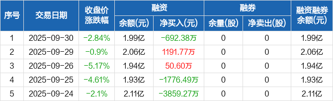 福赛科技:融资净偿还692.38万元,融资余额1.99亿元(09-30)