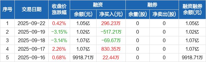 浙江华远:融资净买入296.23万元,融资余额1.05亿元(09-22)