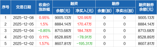 浙江华远:连续3日融资净买入累计476.24万元(12-08)