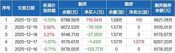 浙江华远:融资净买入716.04万元,融资余额9788.56万元(12-22)