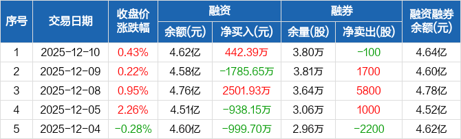 星宸科技:融资净买入442.39万元,融资余额4.62亿元(12-10)