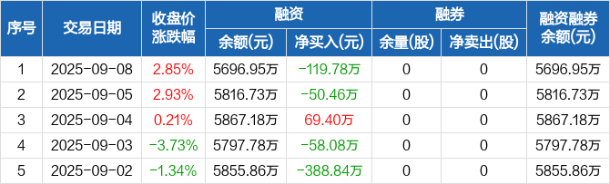 宏鑫科技:融资净偿还119.78万元,融资余额5696.95万元(09-08)