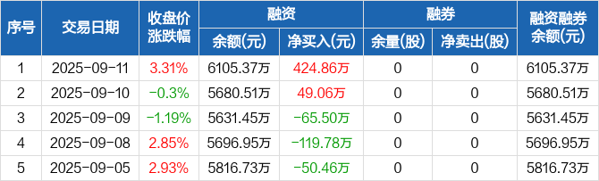 宏鑫科技:融资净买入424.86万元,融资余额6105.37万元(09-11)