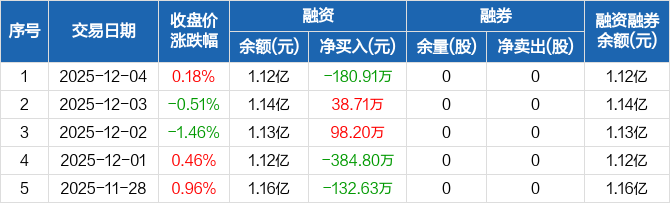 崇德科技:融资净偿还180.91万元,融资余额1.12亿元(12-04)