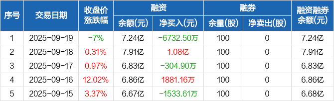 斯菱股份:融资净偿还6732.5万元,融资余额7.24亿元(09-19)
