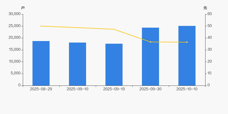 2025年8月29日至今,公司股东户数显著增长,区间涨幅为34.07%。2025年8月29日至2025年10月10日区间股价下降27.06%。