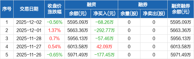 科力装备:融资余额5595.09万元,创近一年新低(12-02)