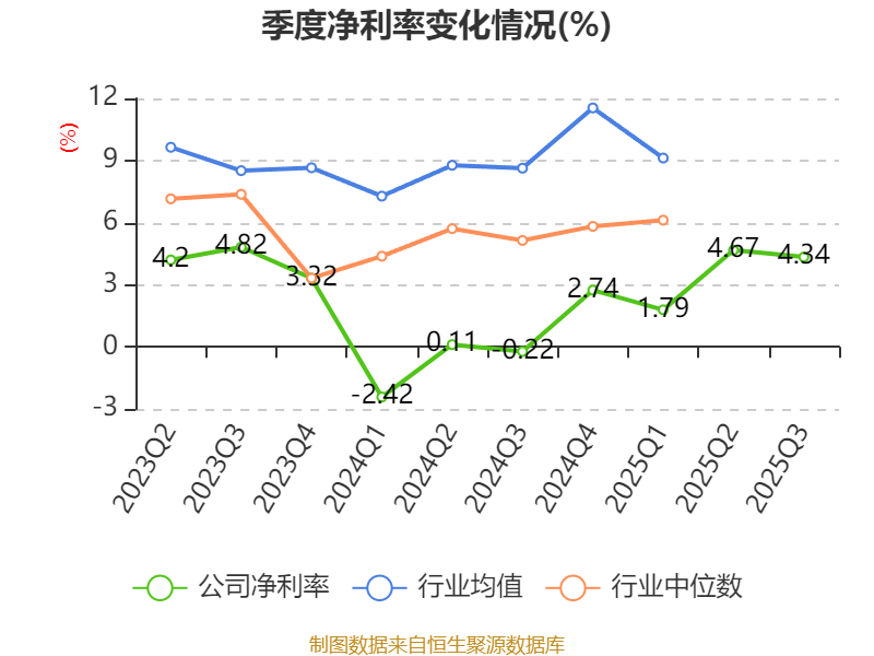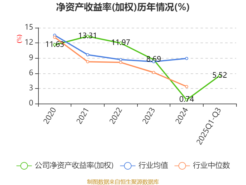 盈利能力方面, 2025年前三季度公司加权平均净资产收益率为5.52%,同比上升6.02个百分点。公司2025年前三季度投入资本回报率为4.62%,较上年同期上升4.93个百分点。