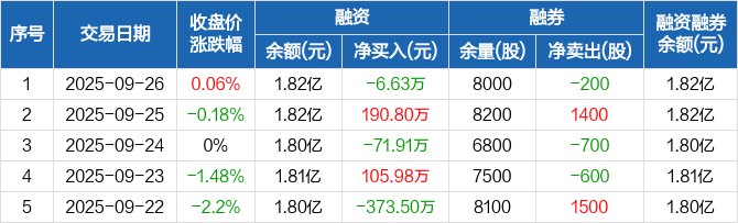中集环科:融资净偿还6.63万元,融资余额1.82亿元(09-26)