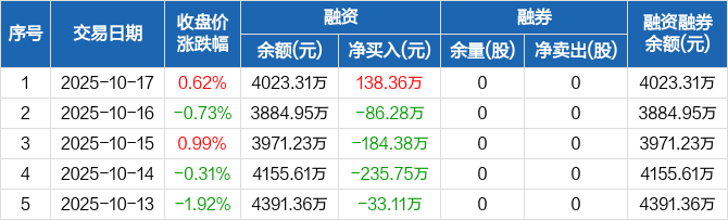 众捷汽车:融资净买入138.36万元,融资余额4023.31万元(10-17)