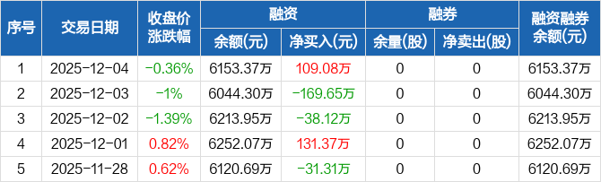 众捷汽车:融资净买入109.08万元,融资余额6153.37万元(12-04)