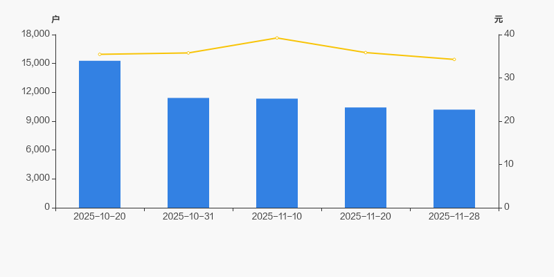 2025年10月20日至今,公司股东户数显著下降,区间跌幅为33.24%。2025年10月20日至2025年11月28日区间股价下降3.33%。