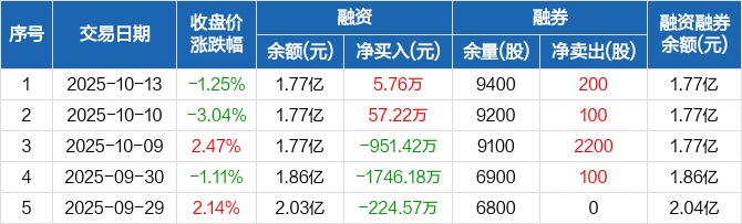 中仑新材:融资净买入5.76万元,融资余额1.77亿元(10-13)