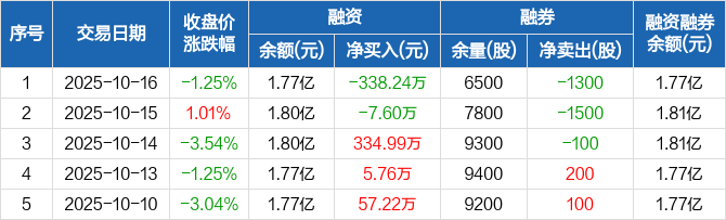 中仑新材:融资净偿还338.24万元,融资余额1.77亿元(10-16)