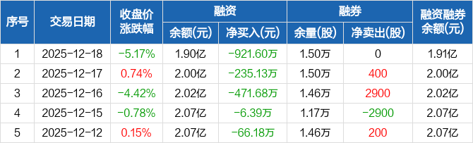中仑新材:连续5日融资净偿还累计1700.97万元(12-18)