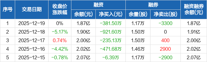 中仑新材:连续6日融资净偿还累计2082.47万元(12-19)