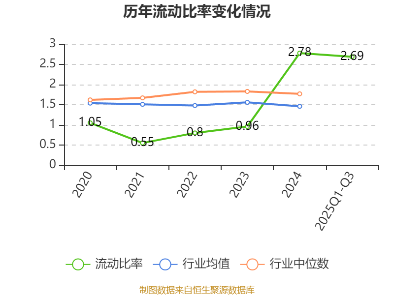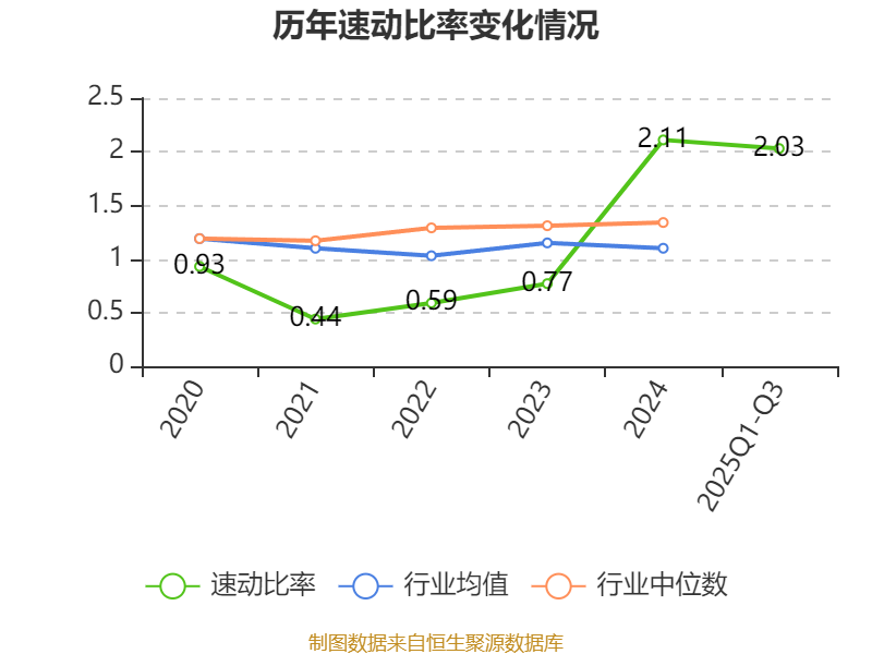 2025年前三季度,公司流动比率为2.69,速动比率为2.03。