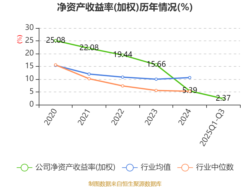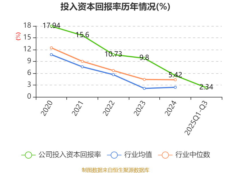 盈利能力方面, 2025年前三季度公司加权平均净资产收益率为2.37%,同比下降1.4个百分点。公司2025年前三季度投入资本回报率为2.34%,较上年同期下降1.41个百分点。