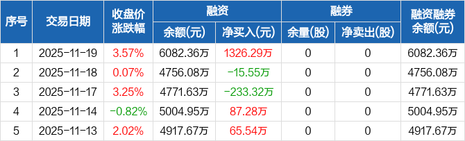 贝隆精密:融资净买入1326.29万元,融资余额6082.36万元(11-19)