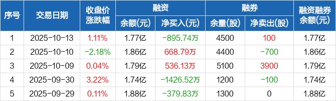 国科天成:融资净偿还895.74万元,融资余额1.77亿元(10-13)